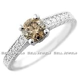 0.80ct SI2 Fancy-Champagne Diamond Engagement Ring 14k White Gold Antique Style by Bell Jewels