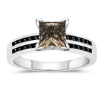 This stylish Engagement Ring showcases a princess-cut Champagne Diamond prong set, crafted with twenty-four AA quality round Black Diamonds channel set in 14K White Gold. Approximate Black Diamond Weight: 0.31 Carats. Approximate Color Diamond Weight: 1.10 Carats. This gorgeous engagement ring radiates sheer elegance. This product is sold by TEMPTATION - BLACK.,METAL:14K Gold,ACTUAL METAL:14K White Gold,RHODIUM:Yes,NUMBER OF DIAMONDS:24,SHAPE:Round,AVERAGE COLOR:Black,AVERAGE QUALITY:AA,MINIMUM CARAT TOTAL WEIGHT:0.31,SETTING STYLE:Channel Setting,NUMBER OF DIAMONDS:1,SHAPE:Princess,AVERAGE COLOR:Brown,AVERAGE QUALITY:SI,COLOR:Brown- Black,MINIMUM CARAT TOTAL WEIGHT:1.10,SETTING STYLE:Prong Setting,PRODUCT TYPE:Engagement Ring,GENDER:Womens,MATERIAL:Color Diamond
